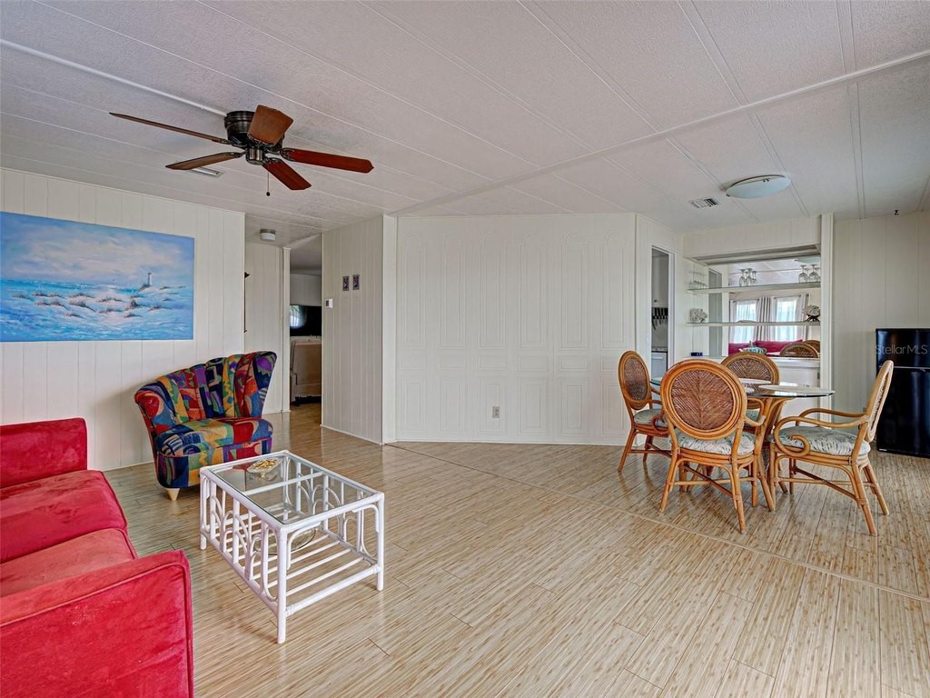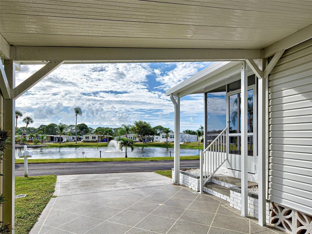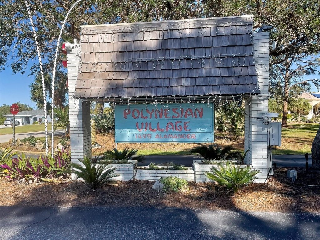 POLYNESIAN VILLAGE MOBILE HOME PARK - YOUR SECLUDED FLORIDA HIDEAWAY IS LOCATED JUST ONE MILE FROM SCENIC MANASOTA BEACH. THIS IS A BRIGHT AND CHEERY UNIT WITH TRAQUIL VIEWS OF THE POND AND REALLY NICE UPDATES. 2025 - ALL NEW FRONT SCREENED LANAI - NEW CARPORT - NEW AMS WEATHER-LOC ROOFOVER SYSTEM WITH INSULLATED ALLUMINUM (ENERGY EFFICIENT) - NEW GUTTER SYSTEMS - NEW TRANSPARENT IMPACT RESISTANT STORM PANELS- NEW PERGO LAMINATE FLOORING AND NEW WASHER & DRYER! Neat as a pin, bright & cheery. Relax on your new lanai and sip your morning brew while watching the waterfowl arrive across the tranquil pond with decorative water feature. You are just steps from the updated Clubhouse with new Kitchen & Pool area. Wander over and catch up with your coffee club friends in the morning or keep your eye out for all the social activities happening throughout the winter months. Dinners, dancing, live entertainment, and just plain fun for those who choose to participate. The primary bedroom with ensuite is spacious with walk-in closet. Cozy guest bedroom attached to a Jack and Jill full bath. New sliders installed from the dining and living room areas out to front porch. Step out the side onto your covered driveway - ready to accommodate 3 cars and 30 feet of it under the roof line. Stay out of the elements to access the 12x8 Utility Building with washer & dryer, storage shelving unit and additional shelving for you garden tools. Located outside at the rear of the storage unit is a shower to remove the Florida sand prior to entering your home! This community also offers an on-site STORAGE YARD with access provided to all owners and renters for an annual fee. The sale of this unit INCLUDES an RV/ VEHICLE SHELTER. COME VISIT THIS PROPERTY TO SEE FOR YOURSELF THE INCREDIBLE DEAL!
